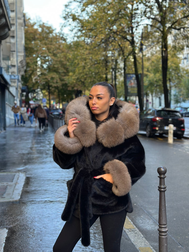 • Nos manteaux de fourrure ont une coupe plus ajustée. Pour plus de confort, nous conseillons de choisir une taille au-dessus de votre taille habituelle, notamment si vous souhaitez porter un pull en dessous.